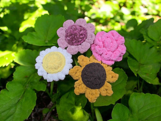Crochet Pattern Bundle, Flower Friends, Pocket Friends Collection (Daisy, Rose, Sunflower)