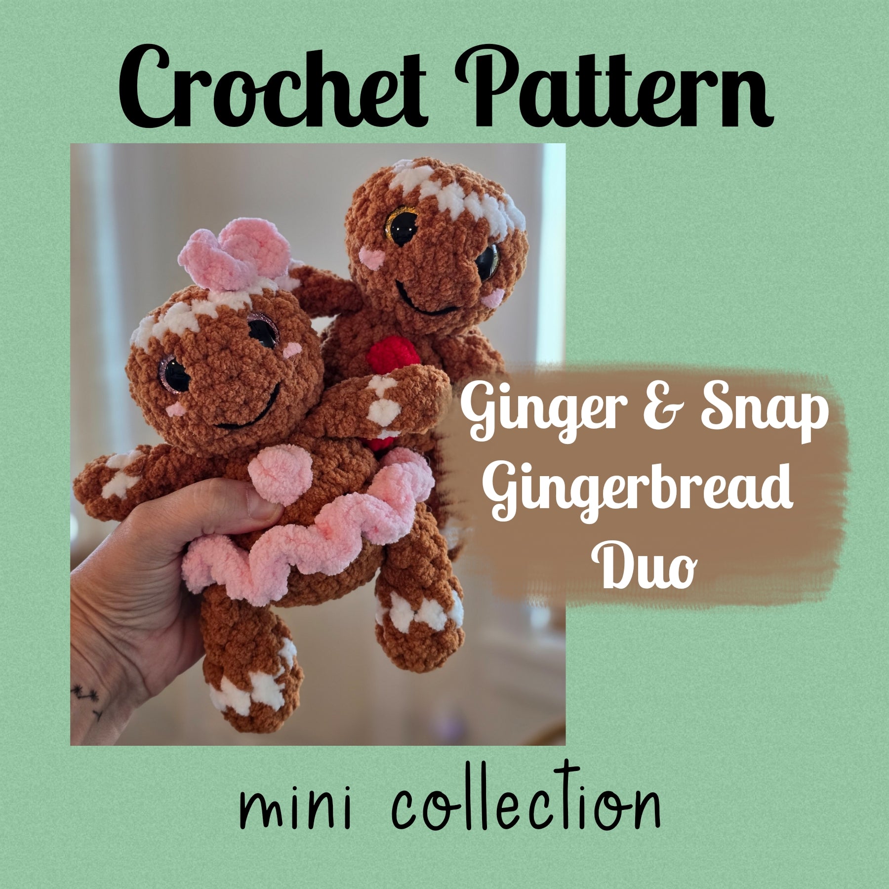 This listing is for a CROCHET PATTERN ONLY. You will receive a digital download with instruction on how to make your own Gingerbread Duo, Ginger and Snap